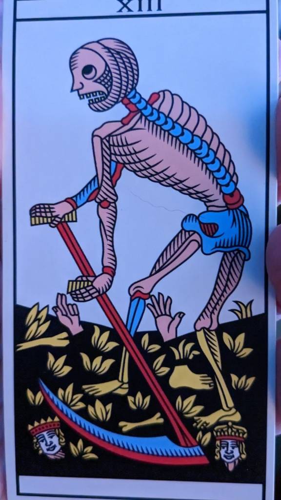 That card, which is called ‘the card with no name’ in older tarot decks, happens to be major arcana # 13.